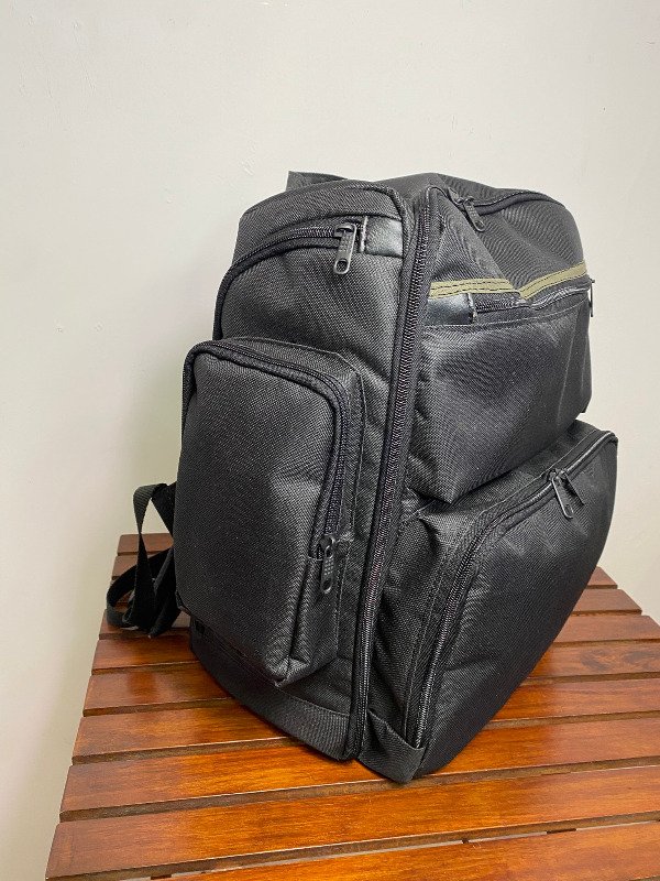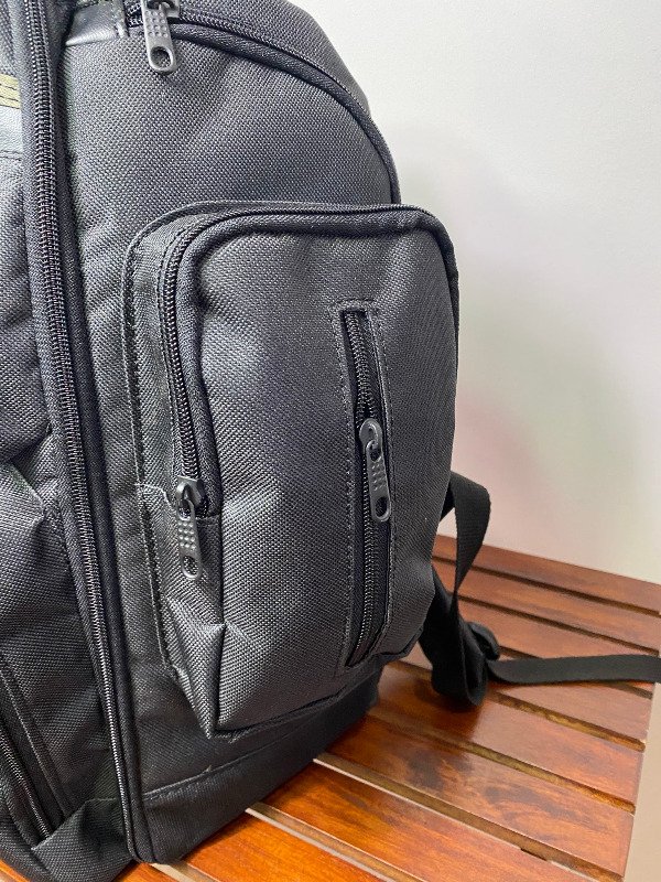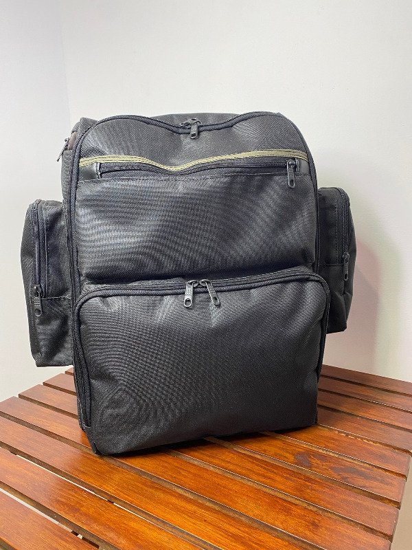 Formato súper cómodo por la cantidad de bolsillos que tiene y el espacio principal es amplio tipo valija